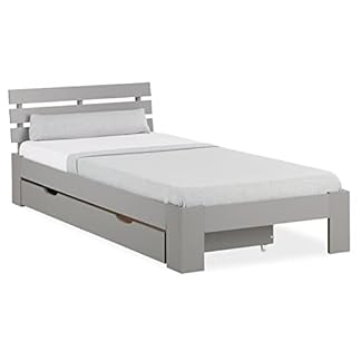 179,00 €Produkt kaufenHomestyle4u 2293, Holzbett 90×200 mit Schublade Grau Einzelbett mit Lattenrost Bettkasten Bett Holz Kiefer