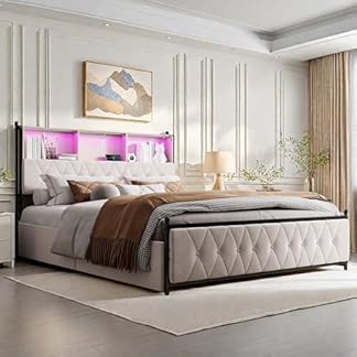 79,99 €Produkt kaufenBett mit Schublade, 180 x 200 cm, Doppelbett, gepolstert, mit 4 Schubladen, Bett, Truhe mit LED und USB-Aufladung, Bettgestell mit Kopfteil für Erwachsene Jugendliche, Samt, Beige