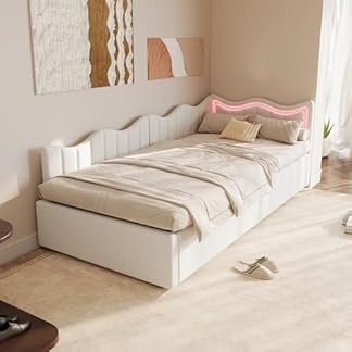 663,09 €Produkt kaufenGepolstertes Schlafsofa, 90 x 200 cm, Einzelbett mit LED, Kinderbett mit Stauraum, Bettgestell mit Lattenrost, Tagesbett für Teenager (cremefarben + Samt)