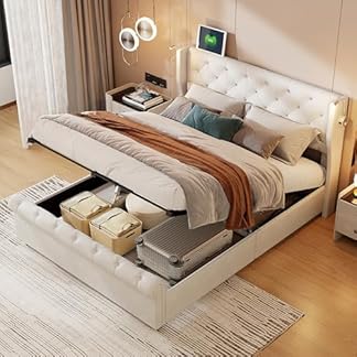 218,00 €Produkt kaufenBLSYHDH Bett mit Bettkasten,Polsterbett Doppelbett 160 x 200 cm,Hydraulisch Stauraumbett mit LED,Funktionsbett mit Bettkasten, Doppelbett mit Stauraum mit Kopfteil und Lattenrost (Offwhite + Flanell)
