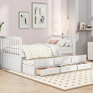269,00 €Produkt kaufenMassivholzbett Einzelbett 90×200 cm, Kinderbett mit Ausziehbares Bett 90×190 cm und 3 Schubladen, Stauraumbett Multifunktionsbett Jugendbett Tagesbett Bettgestell mit Lattenrost, Kiefernholz, Weiß